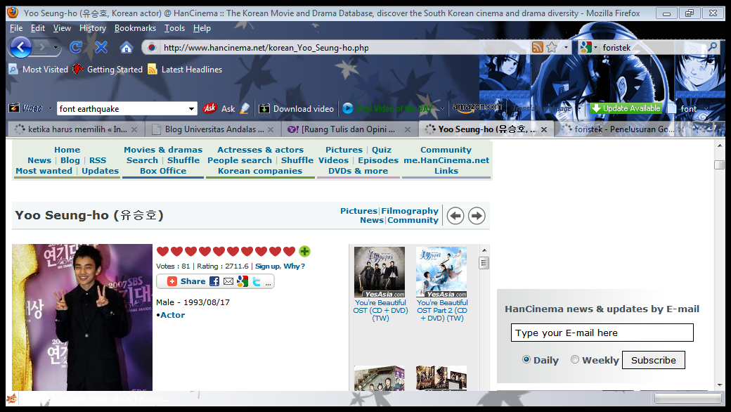 ehe.. hari ini buka-buka email.. ngeliat trend di yahoo trend topic yang sedang bercokol di papan atas.. tueng tueng.. aku ngelihat suatu nama..yang asing.. tapi nggak asing.. nama orang korea.. ehemm tumben.. ada apa rupanya…