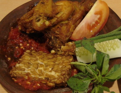 Tip: Gunakan api dengan sedang agar ayam matang dan kering merata. Sayuran untuk lalapan bisa diganti sesuai selera. Pecel ayam biasanya disajikan dengan temped an tahu goreng.