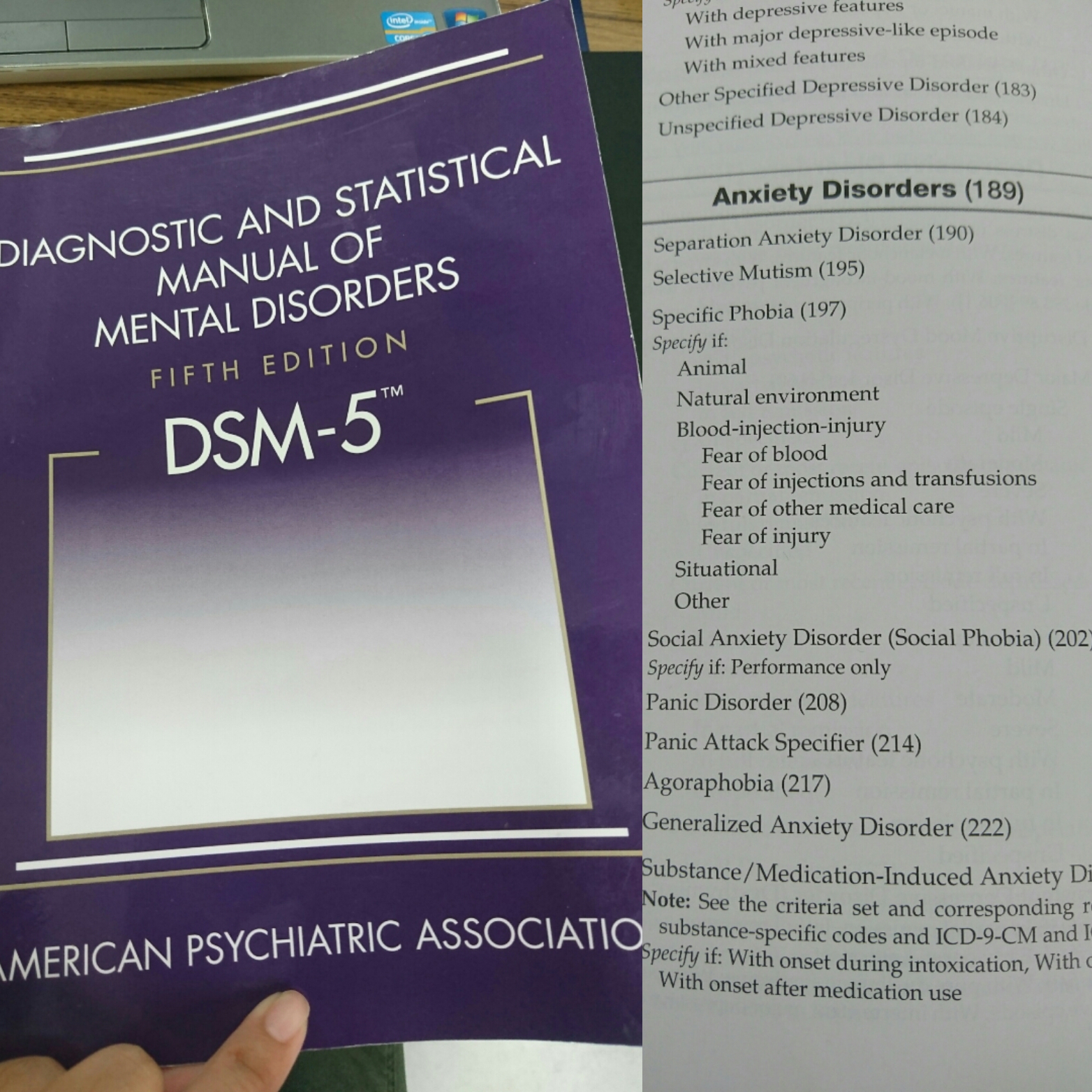 Okay, seperti biasa mari buka buku DSM 5. Kenapa sih dil apa-apa ngeliriknya ke DSM 5. udah saya bilang, buku ini udah kaya “kitab suci”. Dalam pengutipan di jurnal ilmiah, untuk mendefinisikan penyakit mental, wajib hukumnya untuk mengacu dari “kitab suci” ini.