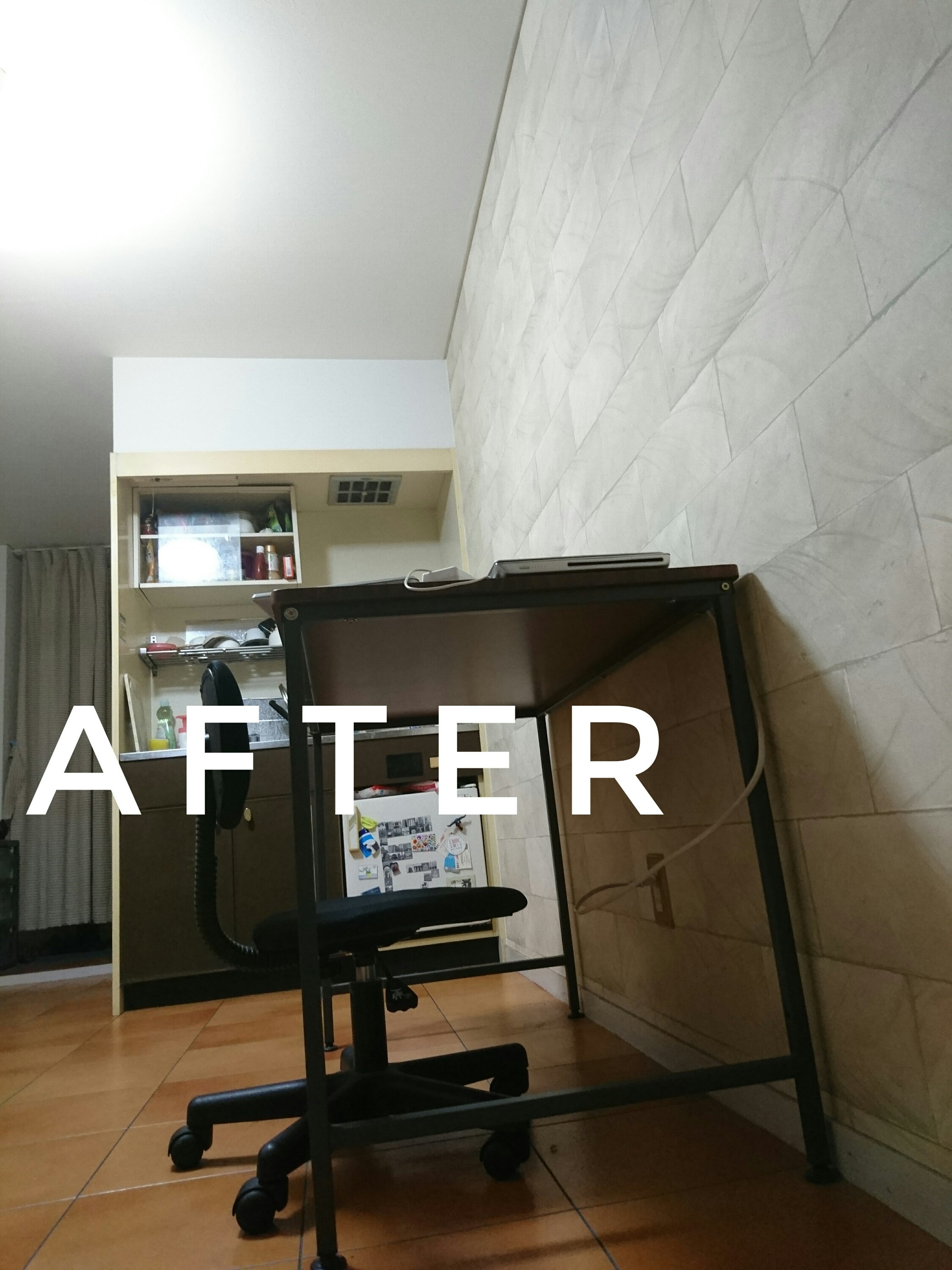Lebih dari dua tahun kemudian, tepatnya hari ini. Ketika nyeri bulanan datang, ketika lagi asik-asiknya baca jurnal senior. Temen lab gw nyeletuk ” dil, kaki lo bisa diam gak? berisik amat” gw yang lagi fokus dan di saat yang bersamaan lagi gak enak badan bilang ” ga bisa”. Yup, kayanya gw kalau lagi fokus, suka ngelakuin gerakan-gerakan yang ga gw sadarin. Dalam dunia belajar, gw emang termasuk anak “kinestetik” di mana badan harus bergerak untuk memicu konsentrasi. Tapi yaudahlah ya.. daripada panjang urusan, akhirnya gw pulang ke rumah.. Dan akhirnya setelah lebih dari dua tahun tinggal di kamar ini, meja yang selama ini nganggur di pinggir wastafel (*kalau kalian zoom in foto sebelumnya, bakal keliatan tuh meja.) akhirnya gw “kembangin”, Gw rangkai lagi.
