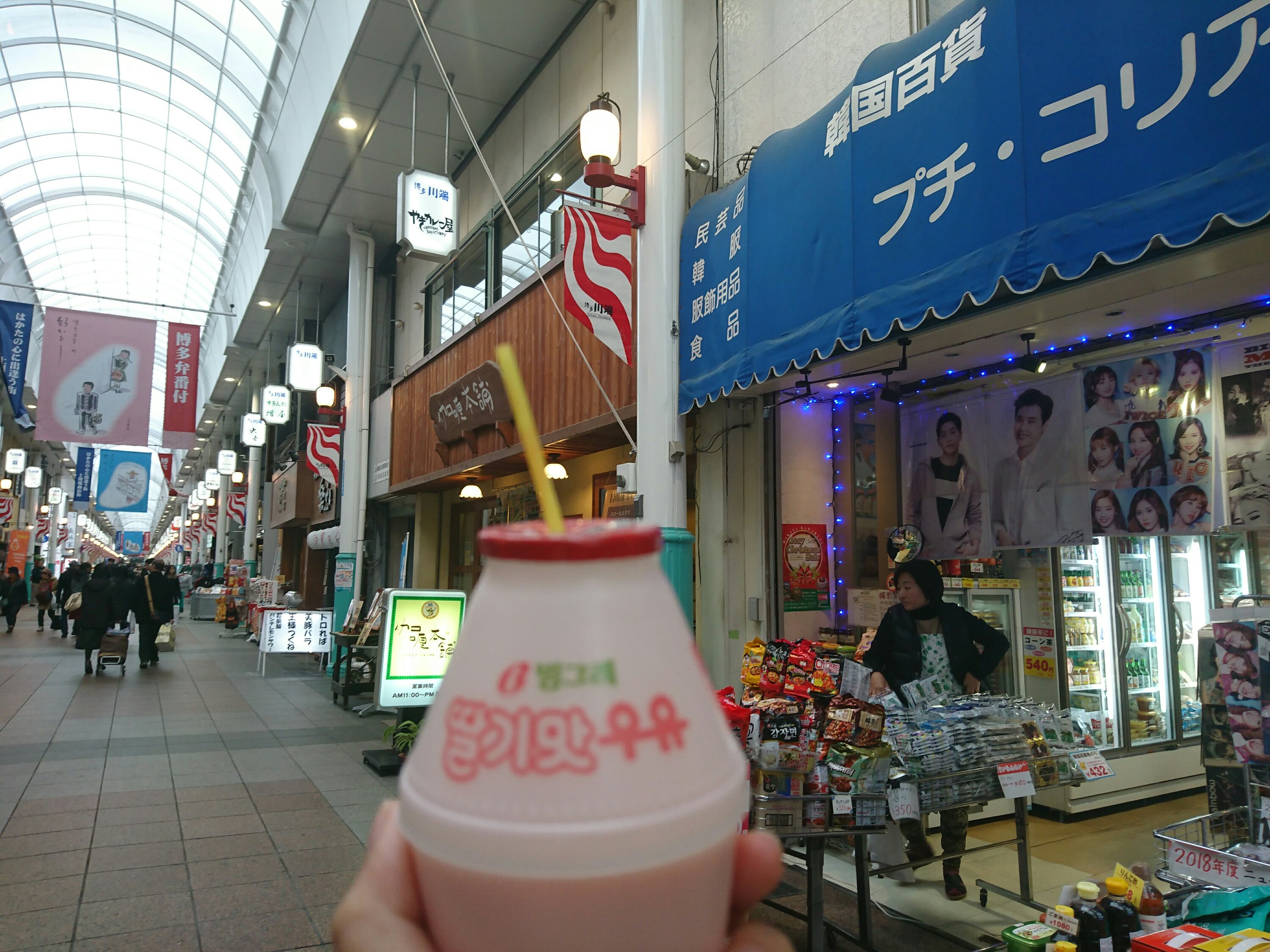 Berhubung jarak rumah ke Nakasu Kawabata(tempat janjian kami, terkenal sebagai tempat hiburan di Fukuoka) hanya 20 menit dari rumah saya, maka saya memutuskan untuk berjalan kaki. Dan berhubung saya sampai duluan maka saya memutuskan untuk jajan di toko korea yang ada di Nakasu Kawabata tersebut.