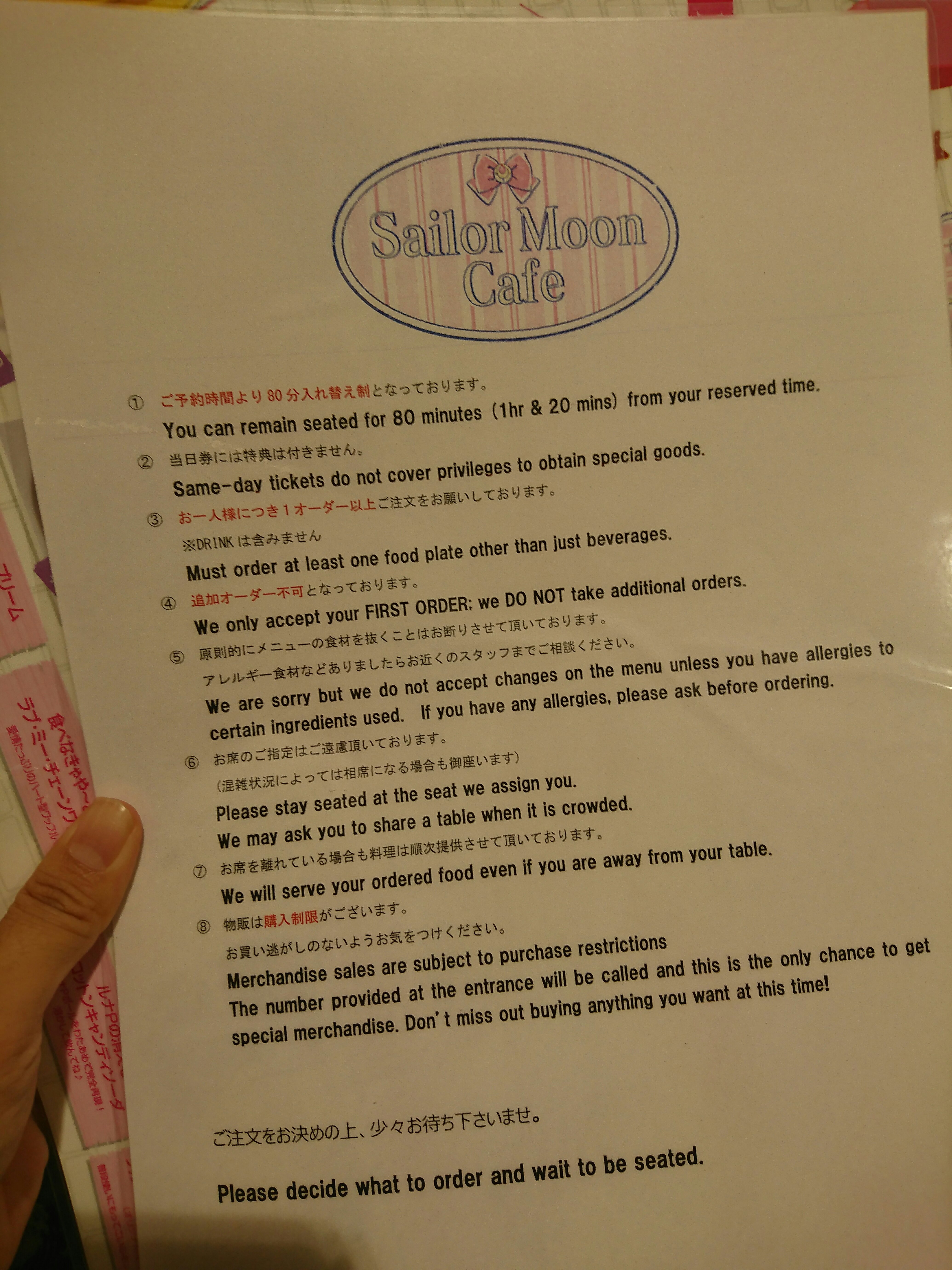 Berhubung saat ini saya masih berdomisili di Fukuoka, maka saya dan sahabat saya yang berasal dari Uyghur berencana untuk datang ke kafe ini. Berhubung bahasa Jepangnya jauh lebih jago dari saya, maka dia bertugas sebagai orang yang “membooking” tempat kita untuk nongkrong di sana nanti. Ya, karena kafe ini adalah kafe “edisi terbatas” maka untuk bisa nongkrong di kafe ini, setiap pelanggan di wajibkan untuk membooking tempat melalui website berikut ini : https://sailor-moon-cafe2017.jp/fukuoka_information/ satu kali booking, kami harus membayar 1000 yen. Kafe limited edition ini hanya buka pada 1 November 2017 hingga 3 Desember 2017.