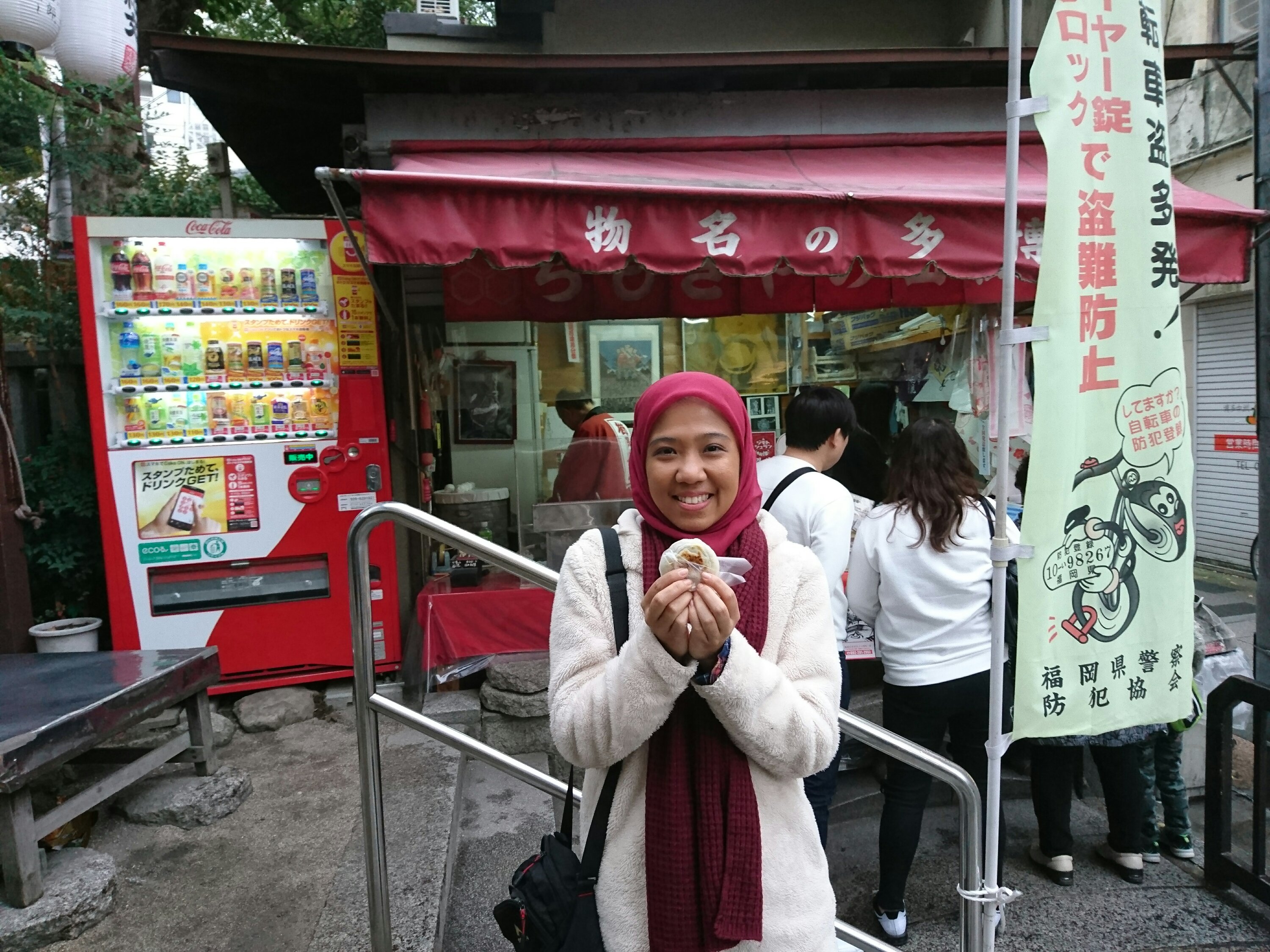 Musim dingin telah menghampiri kota Fukuoka, hal ini ditandai dengan semakin rendahnya temperatur bumi. Namun hari ini, dikarenakan adanya hujan gerimis temperatur kembali naik lebih tinggi daripada sehari sebelumnya. Disaat bersamaan, saya mendapat ajakan untuk mengitari area Hakata. Berhubung saya sudah tinggal lebih dari dua tahun di area Hakata, dan terbilang sangat familiar dengan area ini, jadilah saya seorang guide dadakan. Di tulisan kali ini, saya akan “mempromosikan” kue mochi bakar (abura mochi) yang berada di dekat kuil Kushida.