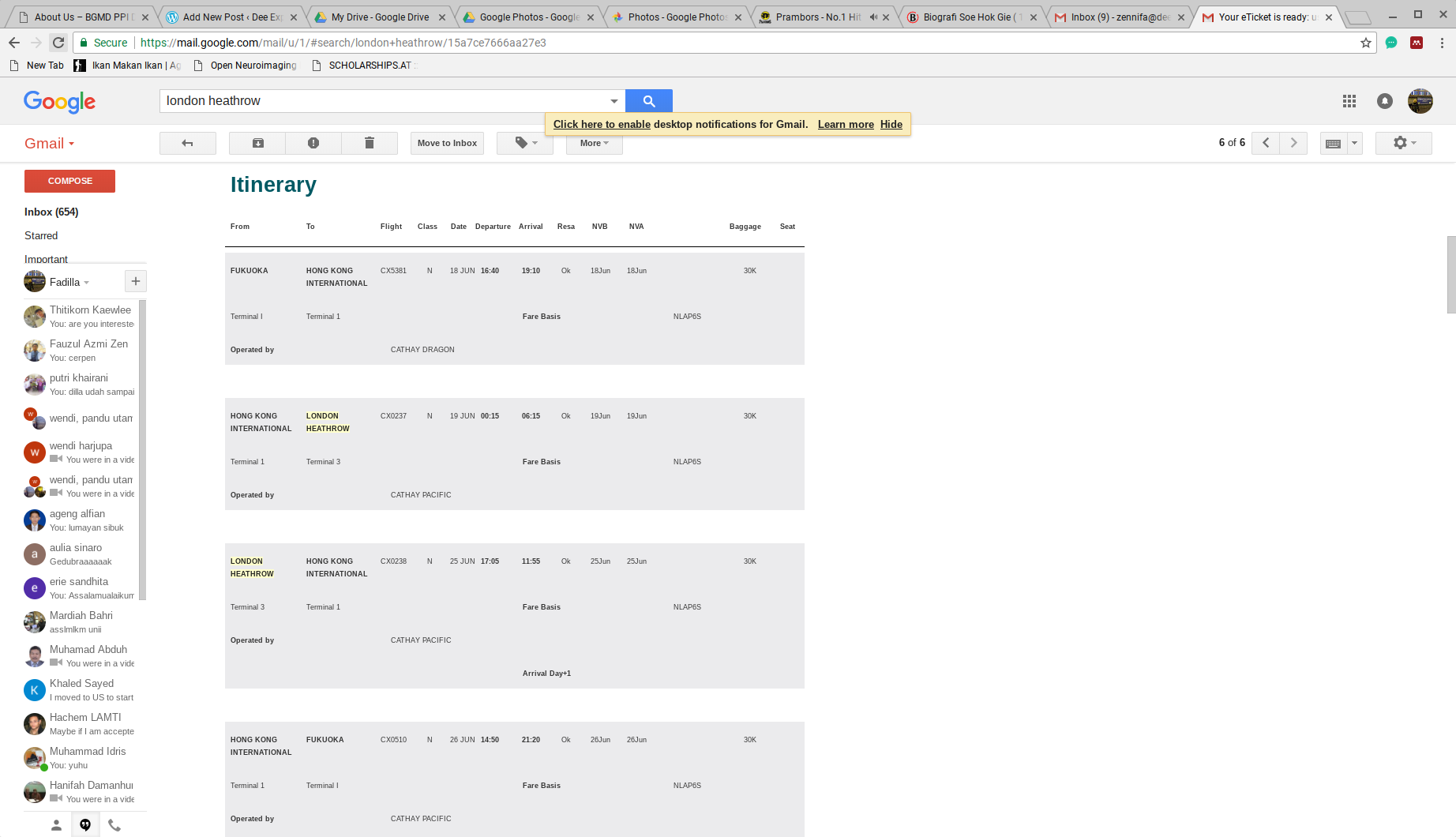 Saya berangkat ke London dari kota Fukuoka dengan menggunakan maskapai Cathay Pasific. Kenapa? karena inilah maskapai penerbangan yang paling murah dari Fukuoka ke London. Perjalanan ajaib kali ini dilakukan selain saya berkesempatan menghadiri workshop di King’s college London, juga cara saya merayakan ulang tahun saya sendiri. Untuk pertama kalinya saya berangkat ke negara lain dengan duit sendiri. (iya kali ini perjalanan non sponsor). Maka dari itu perhitungan sangat ketat perlu saya lakukan. Untuk tiket, saya memesannya 4 bulan sebelum keberangkatan. Kenapa? karena hal ini juga diperlukan untuk mengurus visa ke london. Tiket yang saya beli berharga 81, 180 yen return, atau setara dengan 10 juta rupiah.
