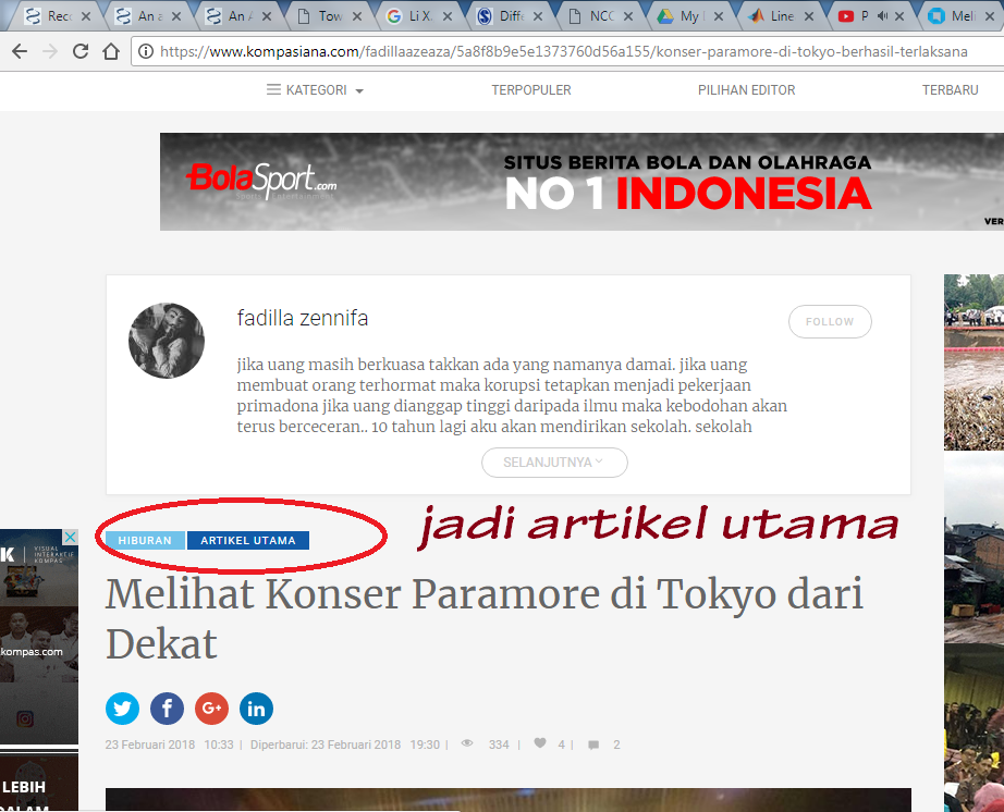 Sebelumnya saya sudah lama vakum di dunia kompasiana, gak ada artikel saya yang menjadi artikel utama. Namun, 2018 berubah. Akhirnya setelah sekian lama akun itu terdaftar, satu artikel saya jadi artikel utama. Yatta!!