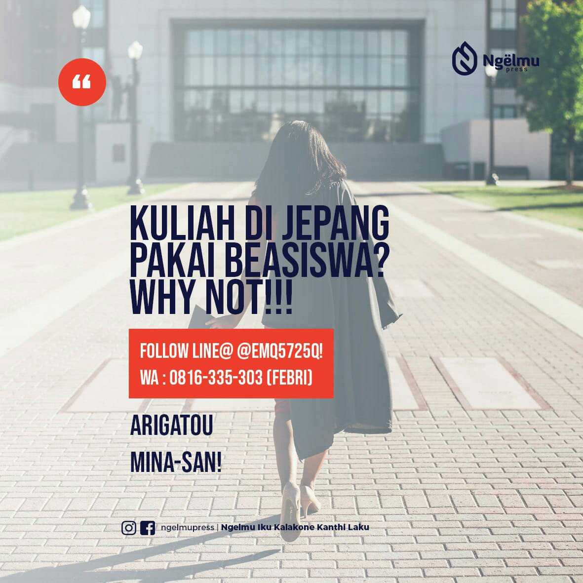 INI adalah PANDUAN LENGKAP untuk kuliah di JEPANG mulai dari D3 sampai S3 bahkan study exchange juga di bahas di dalamnya. Kamu akan dipandu mulai dari persiapan, mendaftar, keberangkatan, menjalani kuliah dan hidup di Jepang, kemudian pulang lagi ke Indonesia setelah lulus.